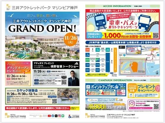こちらは三井アウトレットパークマリンピア神戸がリニューアルオープンした時のチラシです。